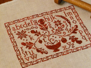 What a beautiful piece! I love, love, love the red, and I don't think I have ever seen that design before. I feel so slow at stitching when I see all you get done!